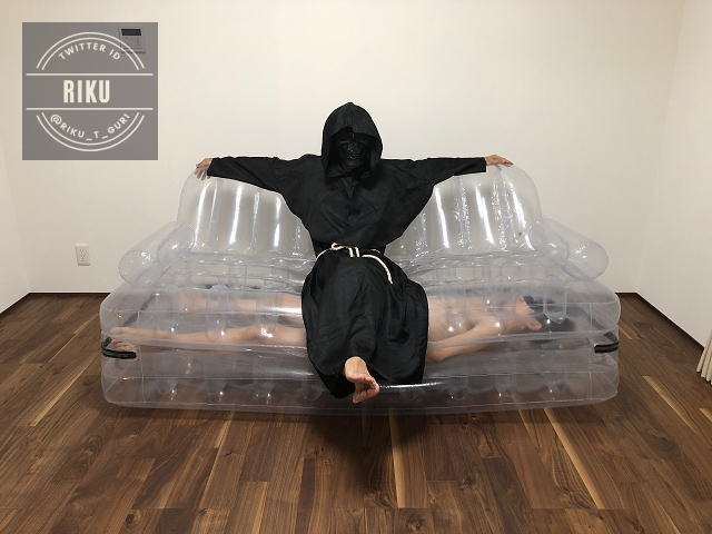 ふわふわに押しつぶされたい方のアイテムです。2種類あり、股間部分が空いているタイプと空いていないタイプです。人間家具(ポゼッションプレイ)向けです。また、ローションを入れると中で動くも出来、穴の開いていないタイプに2人で入ることも出来ます。詳しくは、こちら